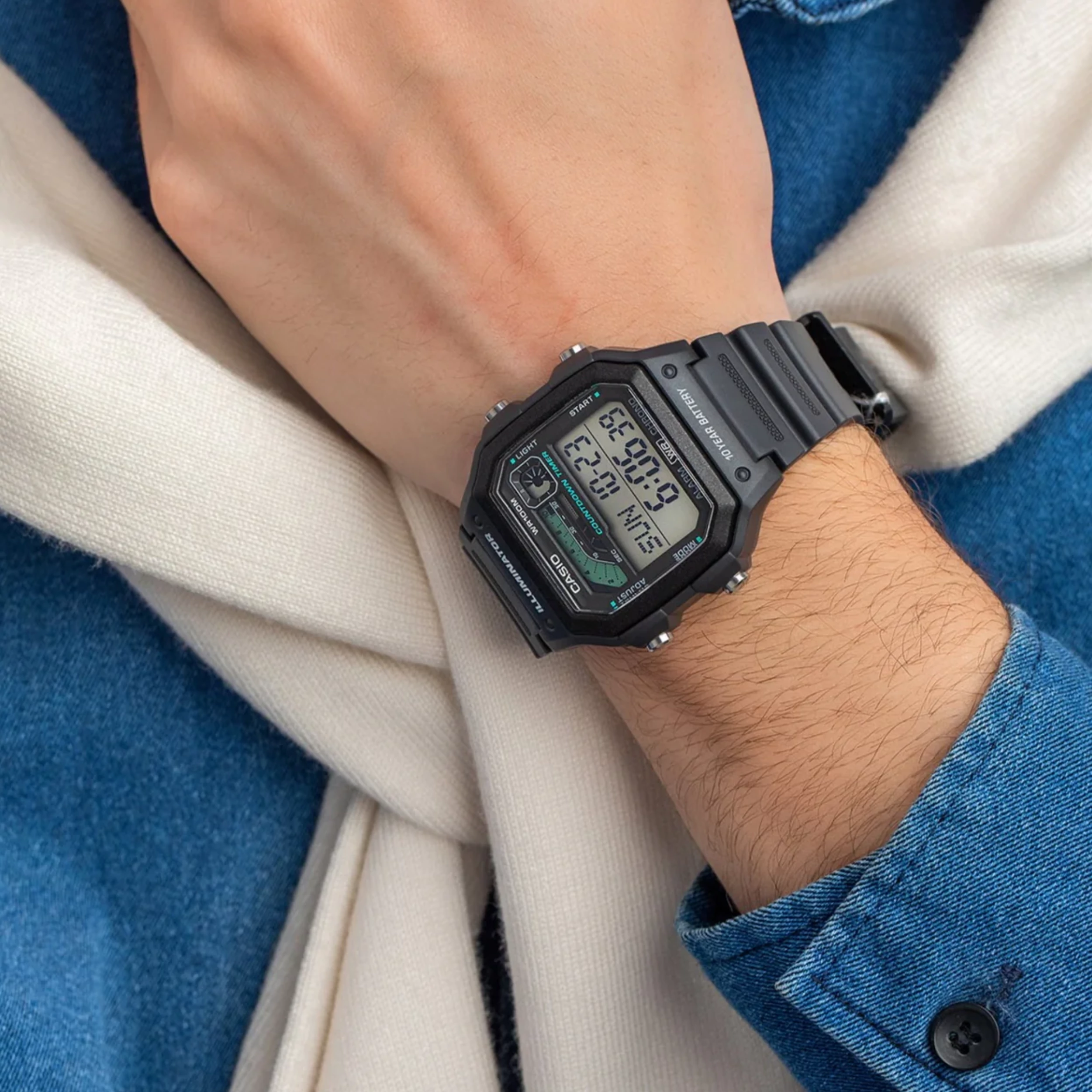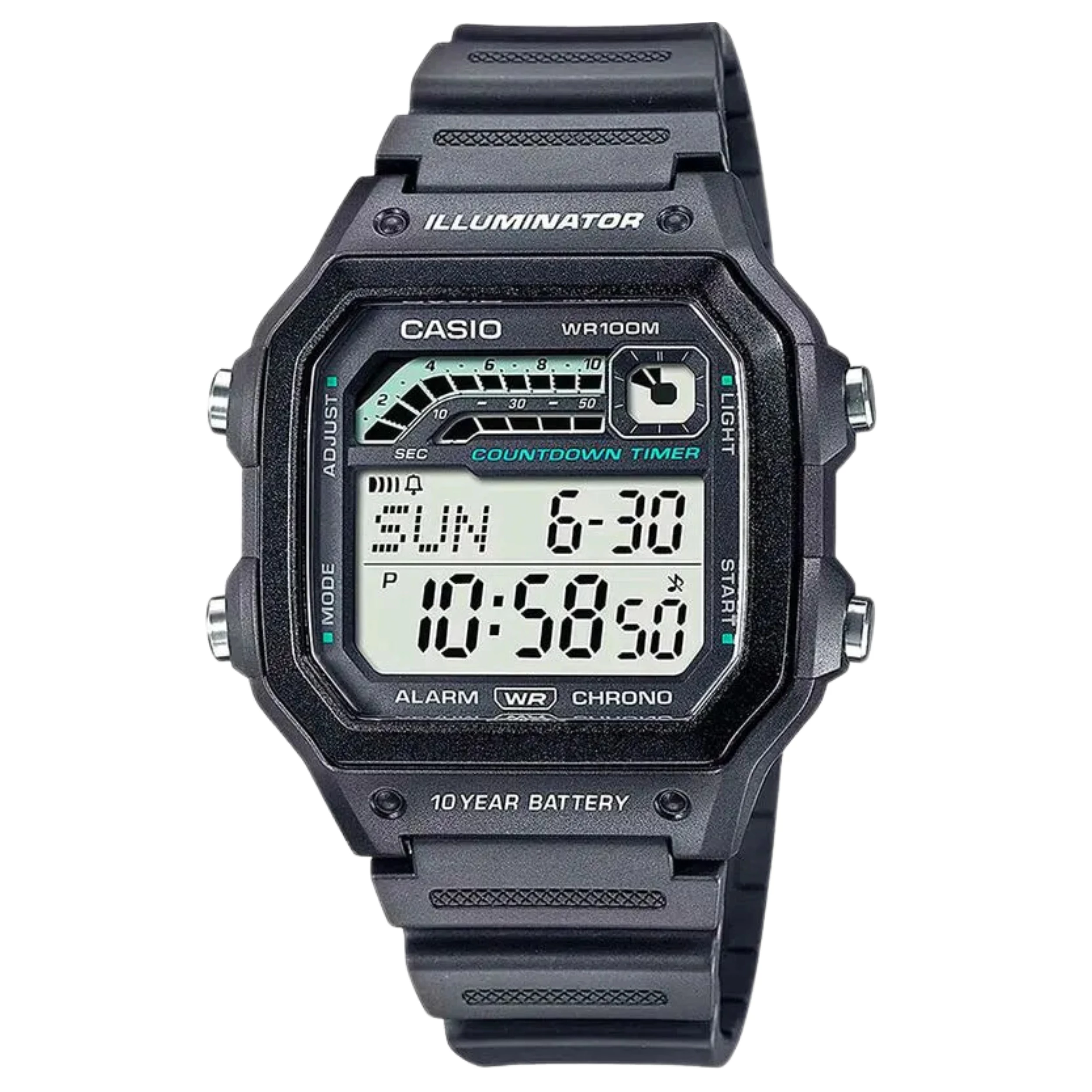 Relógio Casio WS-1600H-8AVDF-SC com Caixa Quadrada e Pulseira em Resina na Cor Cinza e Mostrador Digital.