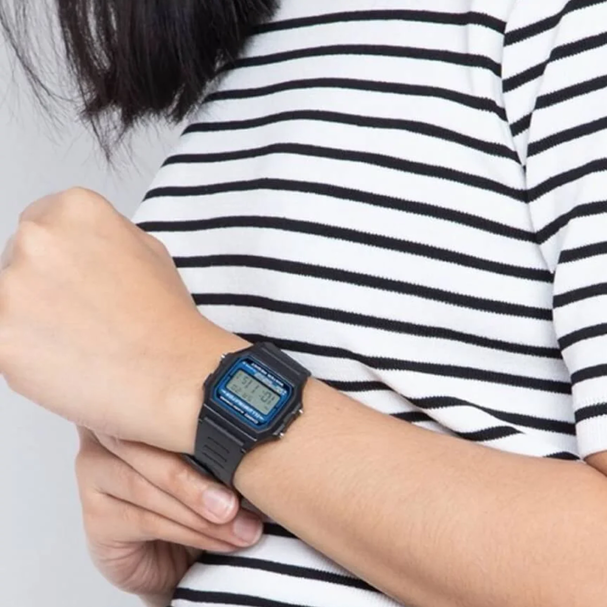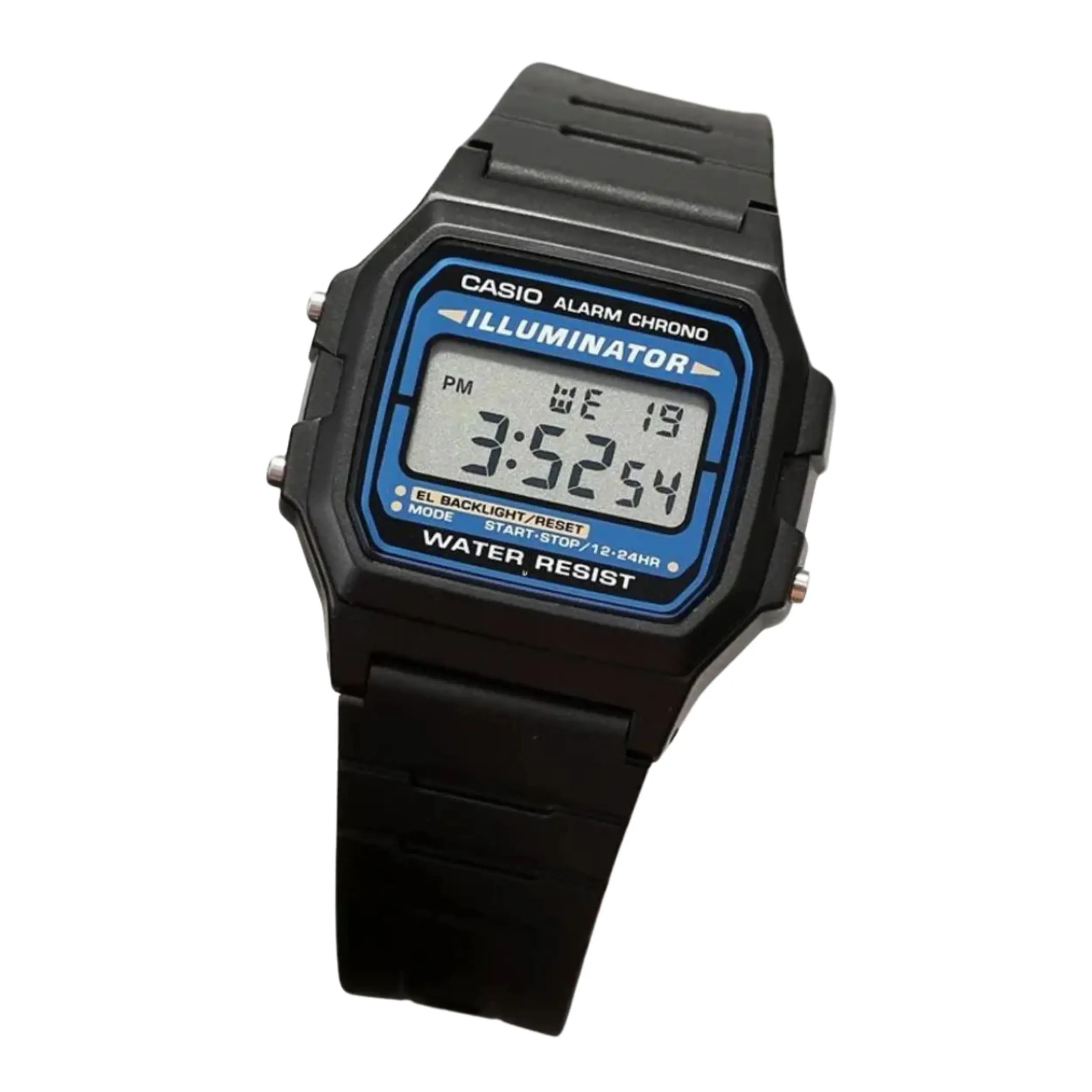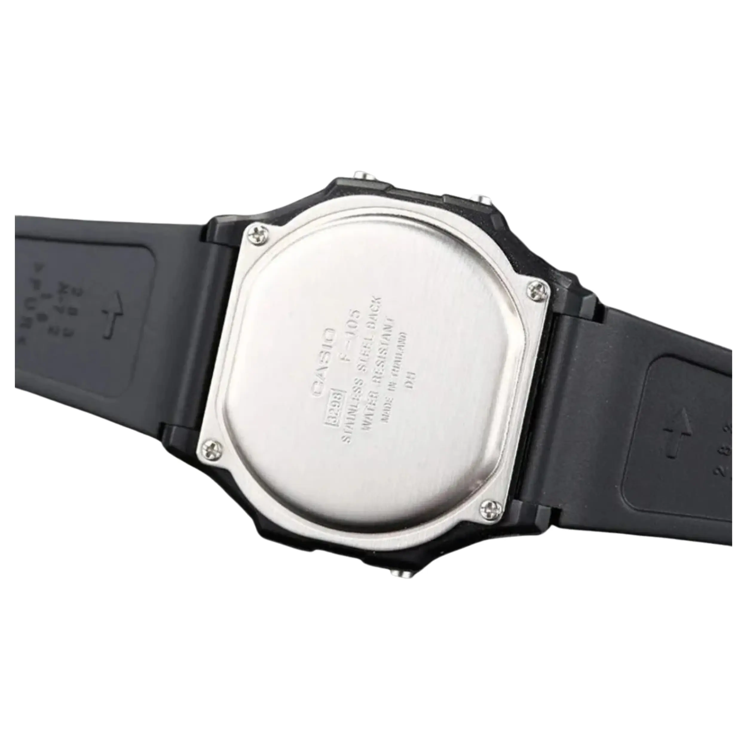 Relógio Casio F-105W-1ADF-SC com Caixa Quadrada e Pulseira em Resina na Cor Preta e Mostrador Digital.