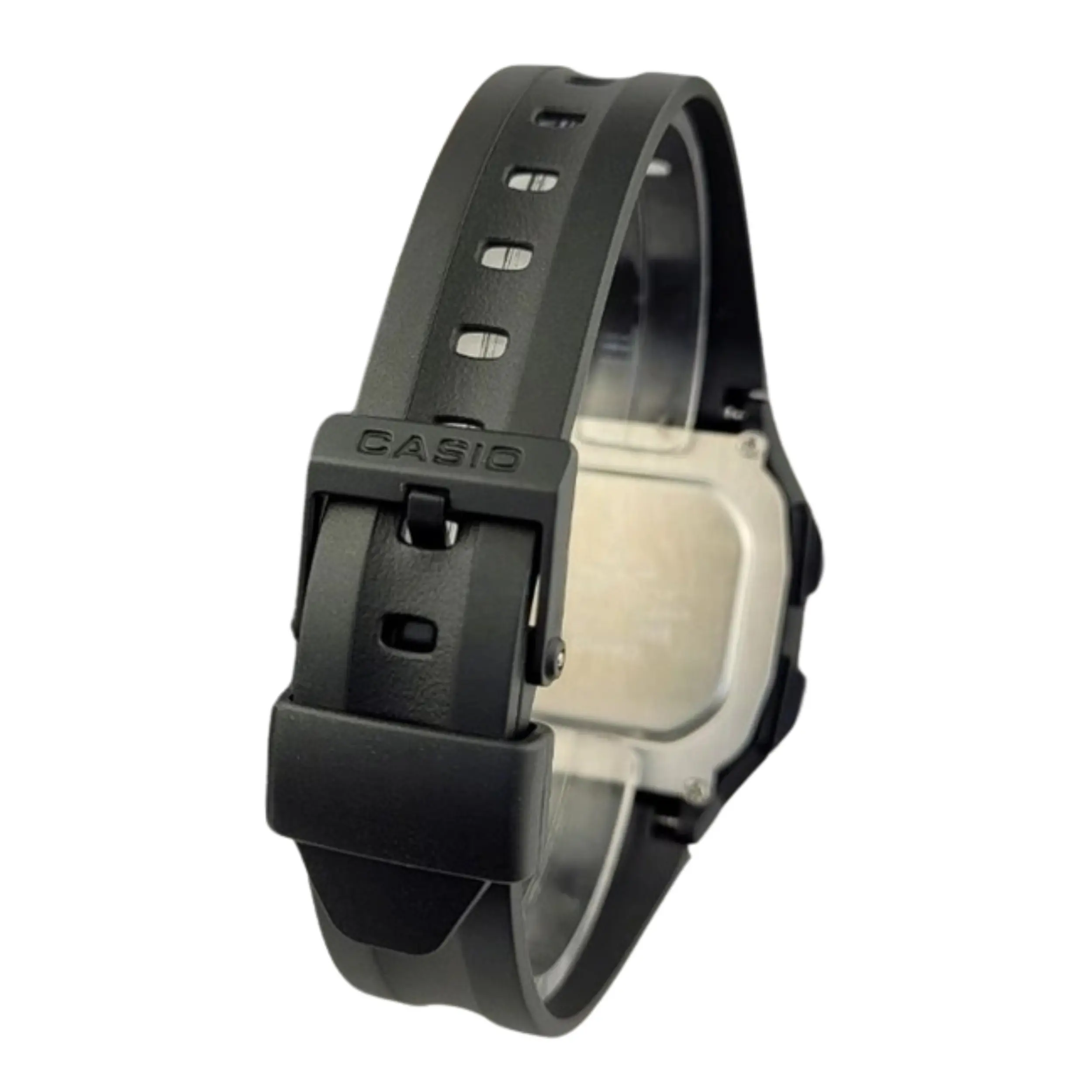 Relógio Casio F-201WA-9ADF-SC com Caixa Quadrada e Pulseira em Resina na Cor Preta e Mostrador Digital.