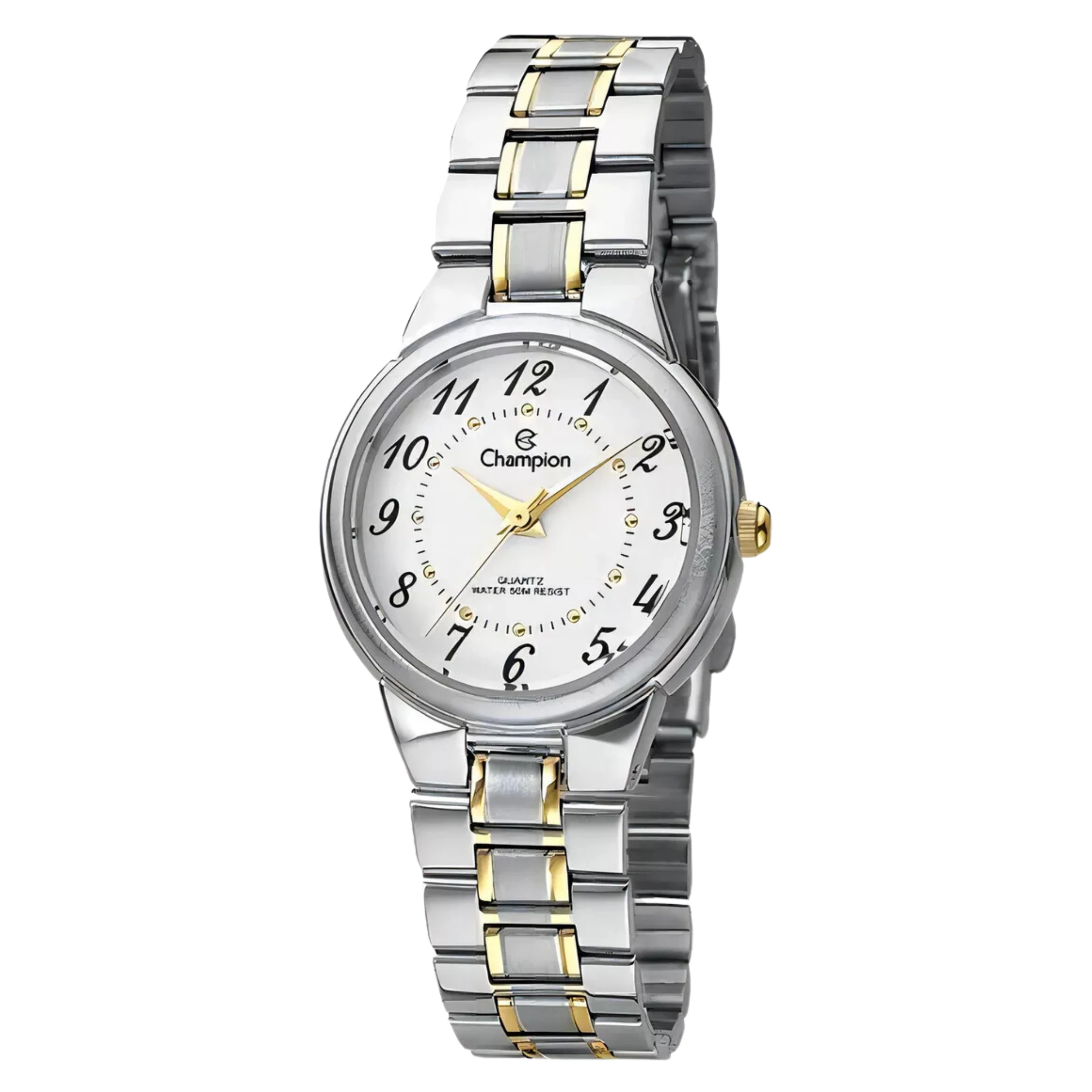 Mostrador: Mostrador analógico na cor branco com detalhes dourados