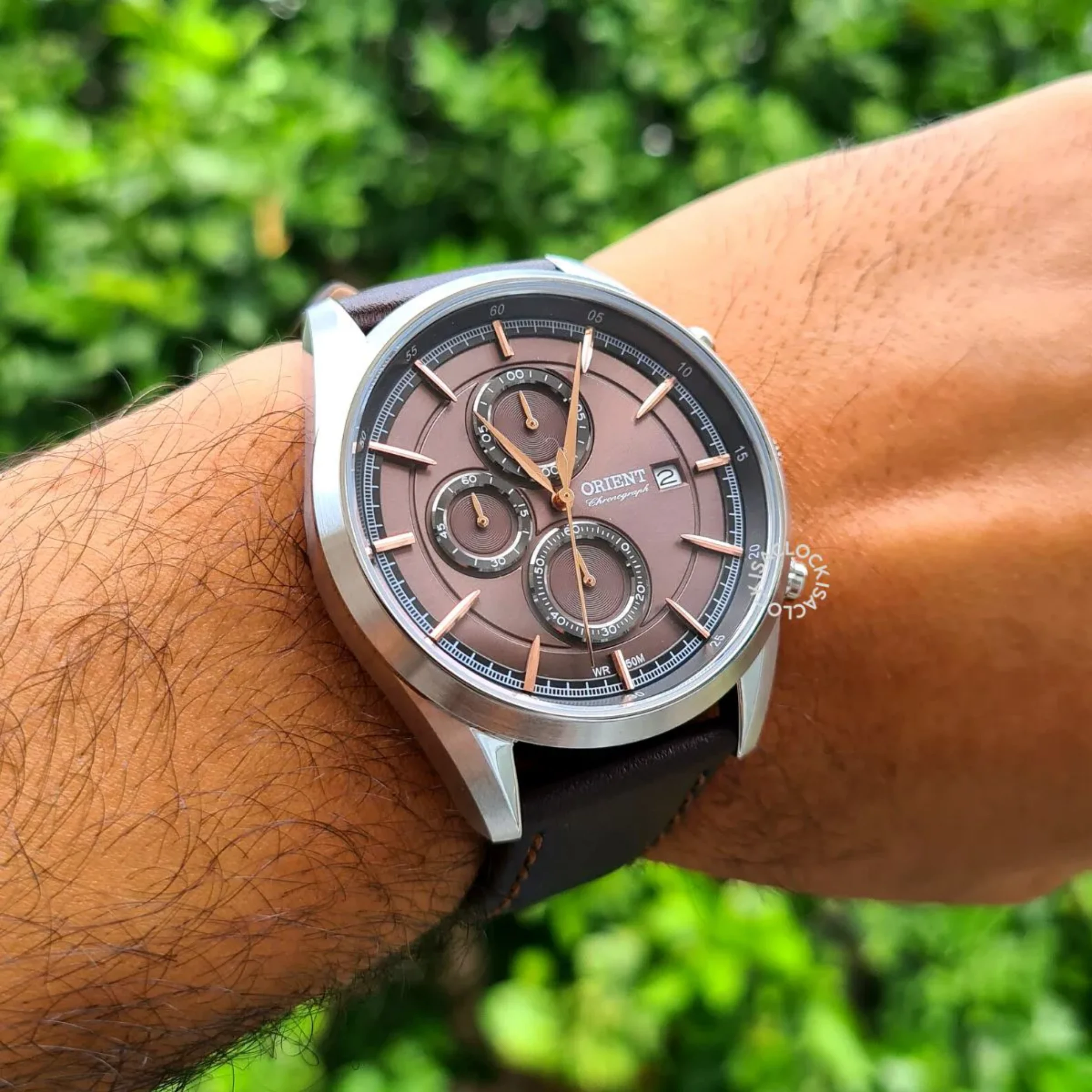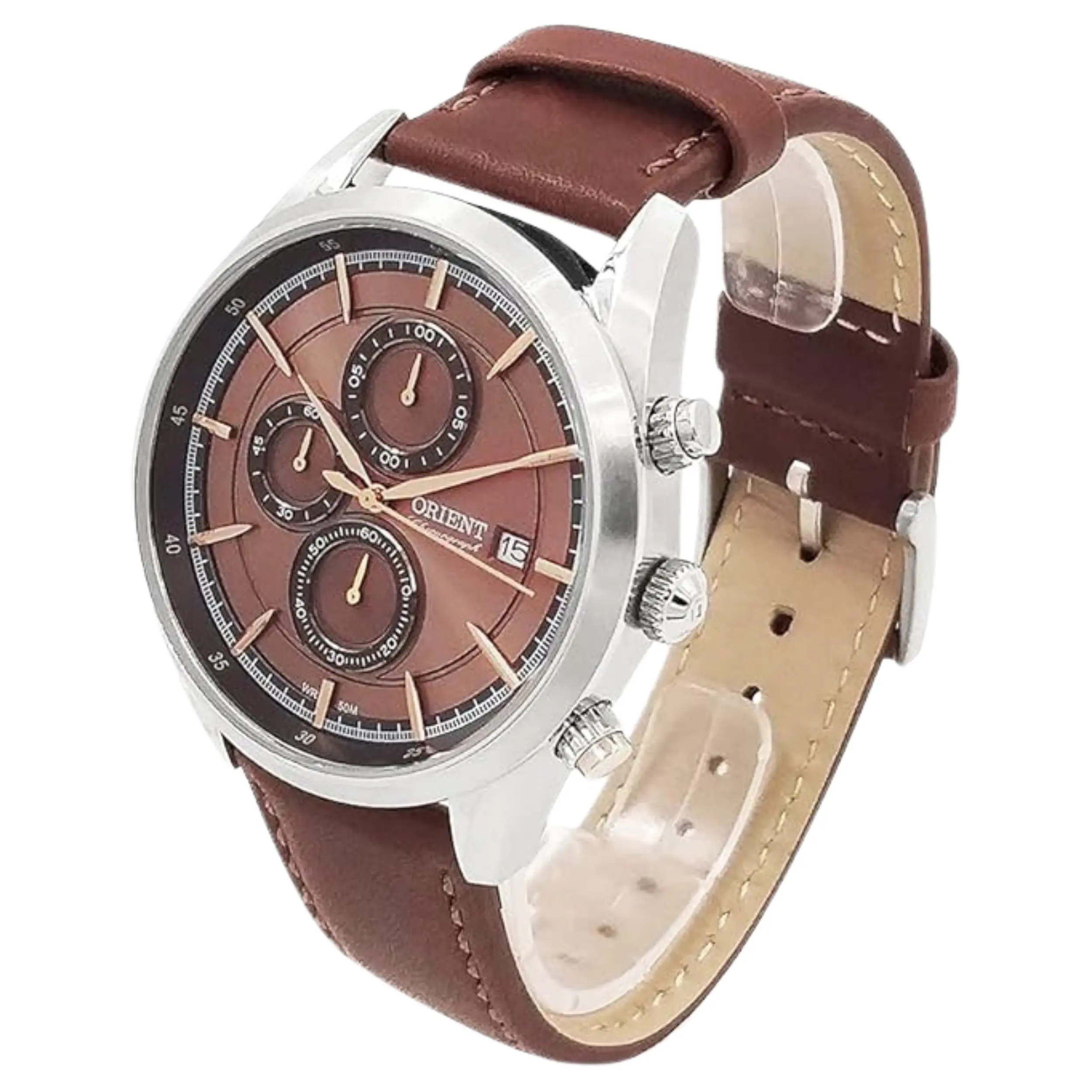Relógio Orient MBSCC053 N1NX com Caixa Redonda e Pulseira em Couro na Cor Marrom e Mostrador em Marrom.