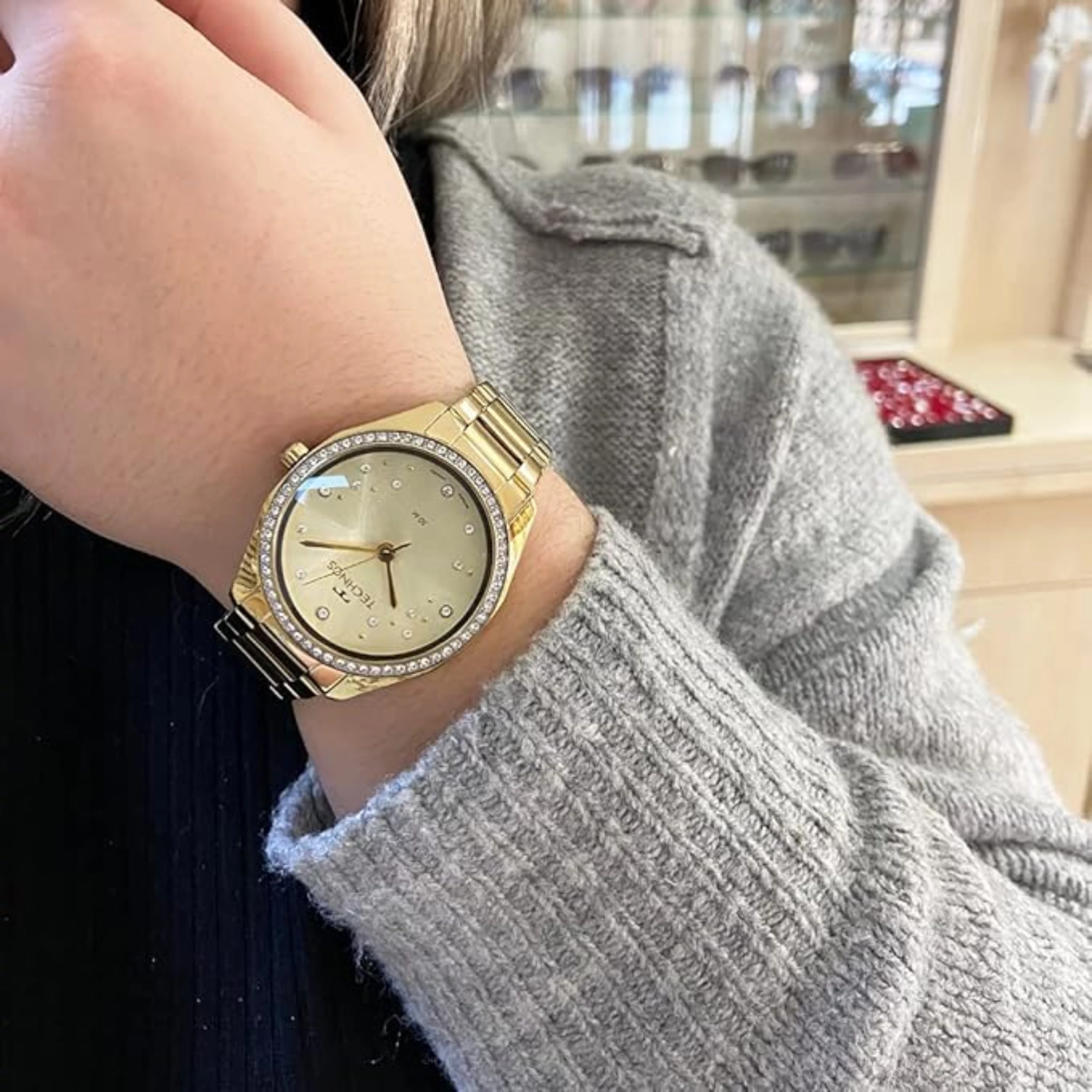 Relógio Technos 2036MMI/1K com Caixa Redonda e Pulseira em Aço na Cor Bicolor e Mostrador em Branco.